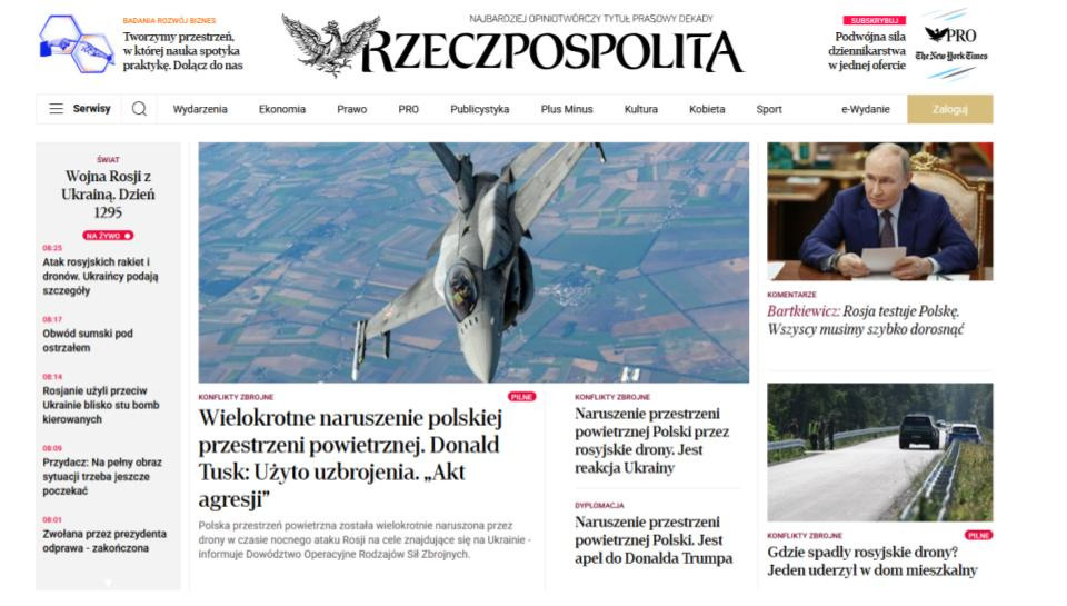 Министърът на отбраната Владислав Косиняк-Камиш написа в X, че „повече от десет обекта“1 са навлезли в полското въздушно пространство и тези, които са представлявали риск за сигурността на Полша, са били неутрализирани. За няколко часа през нощта са били преустановени полетите на летището на Варшава Шопен.
